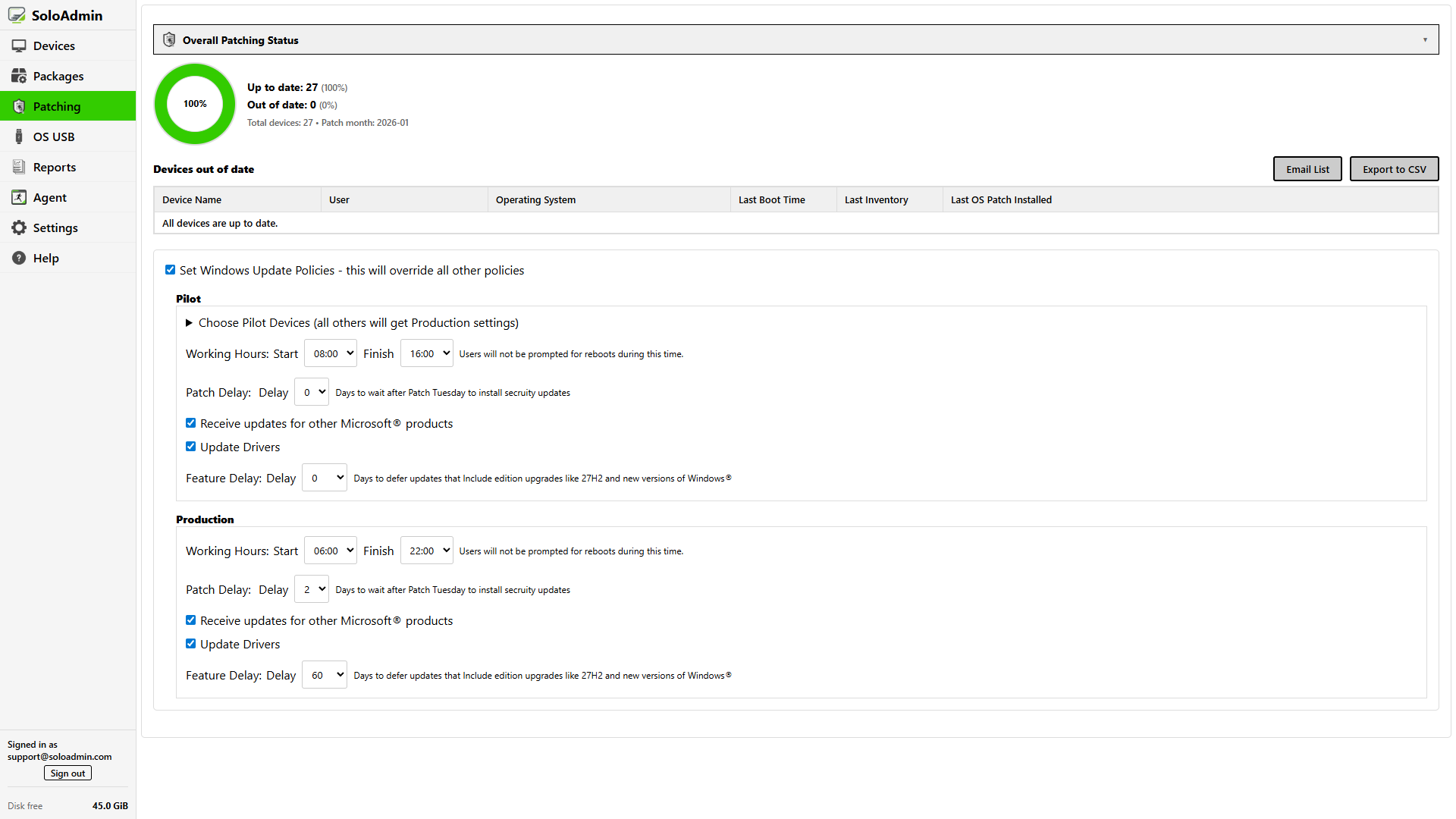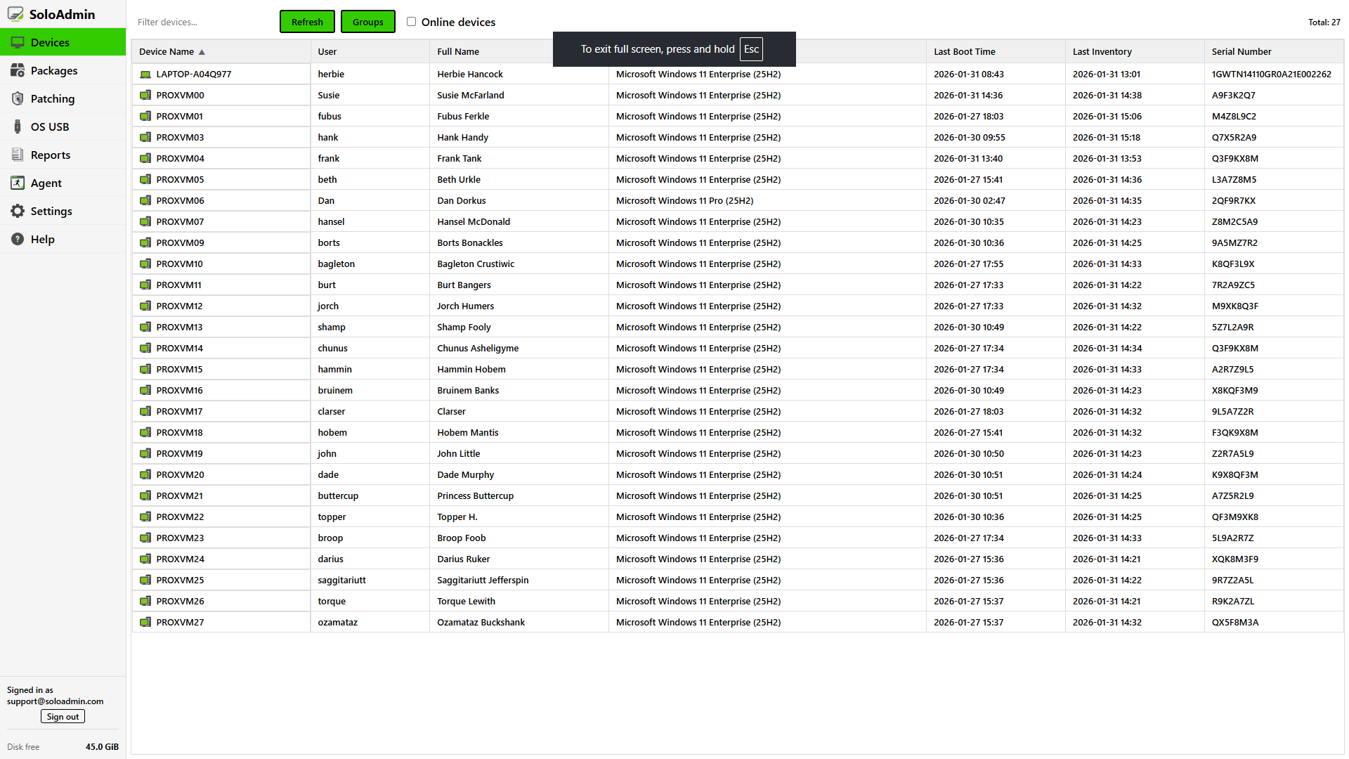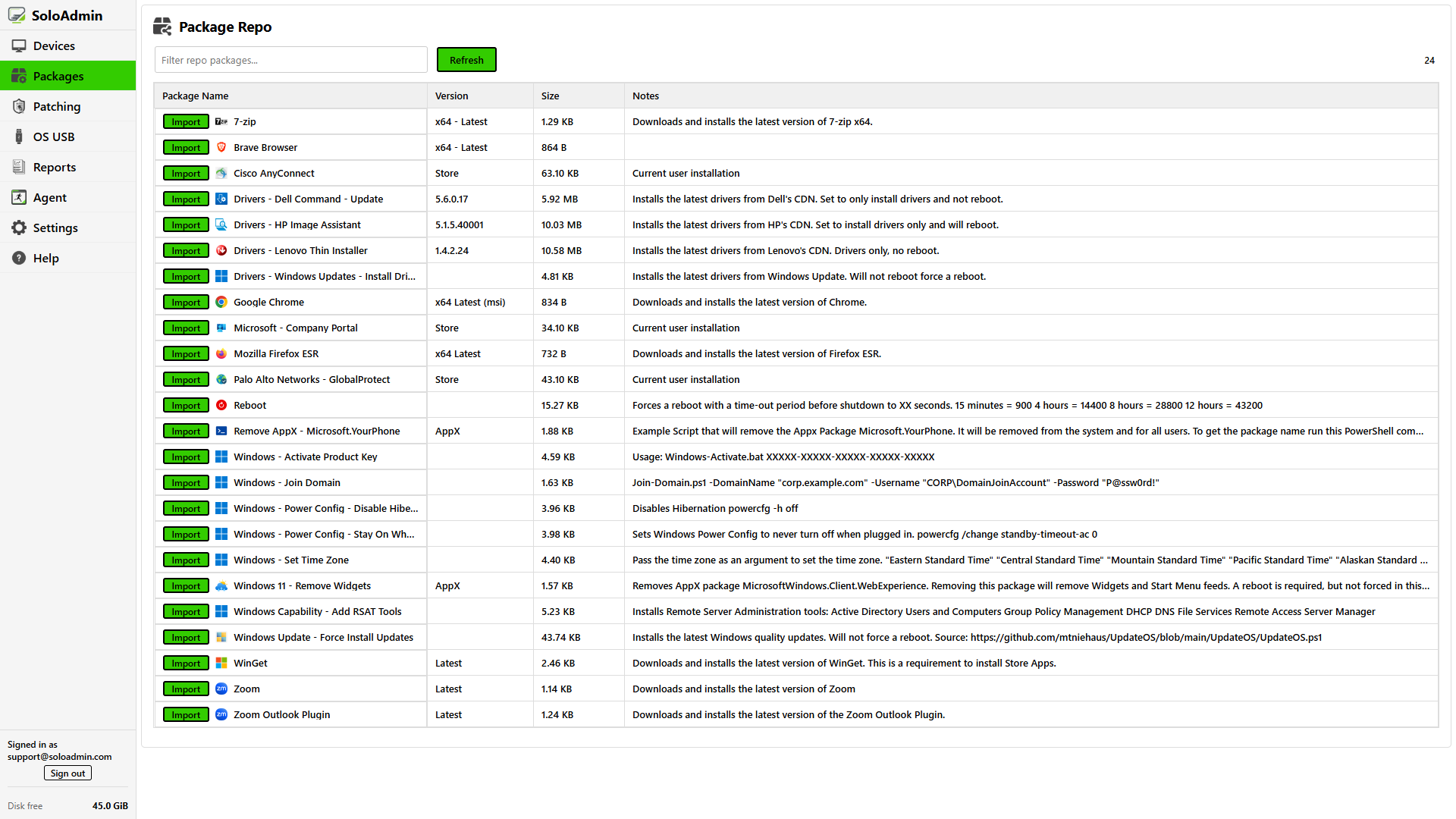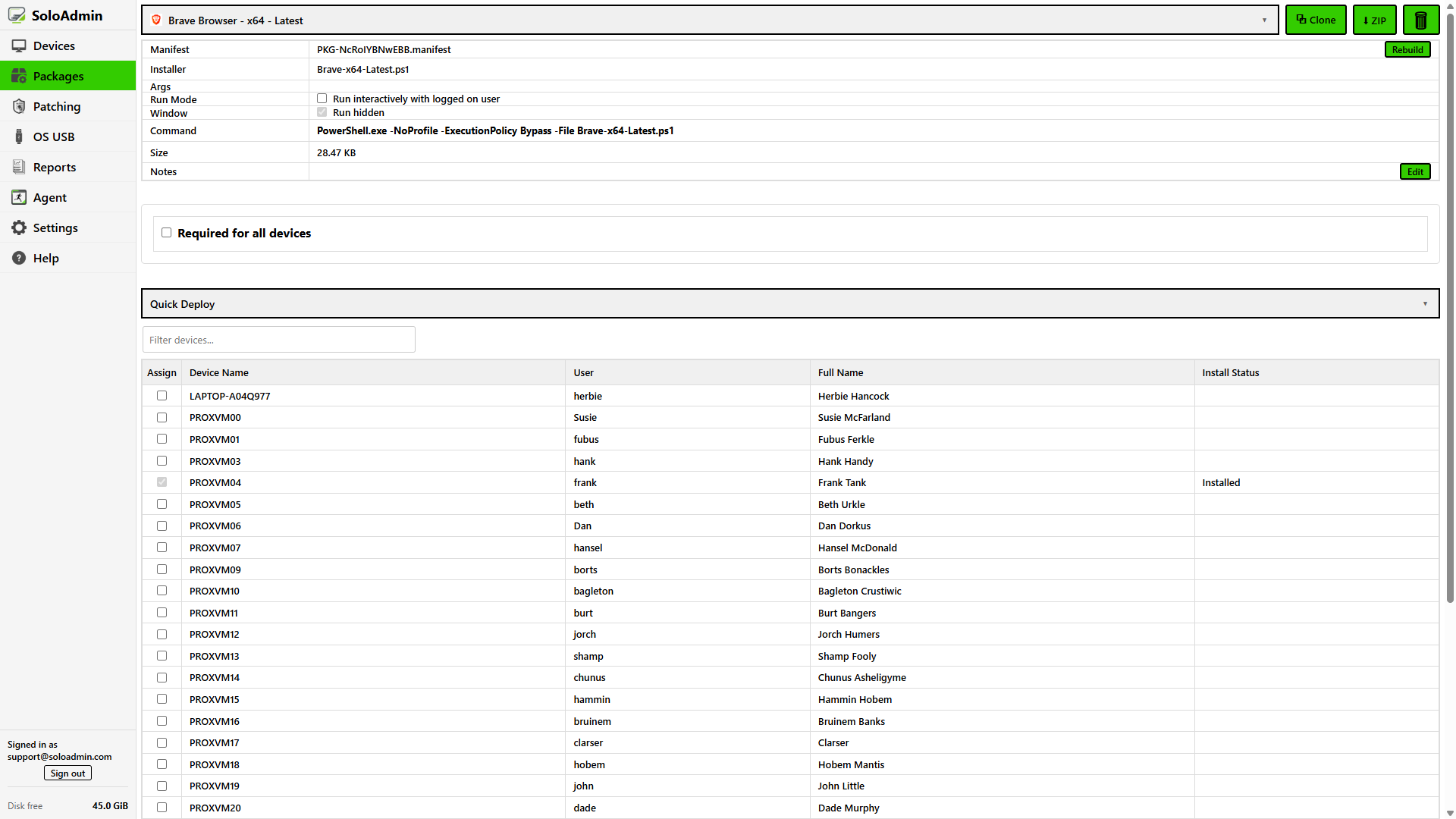 Windows endpoint management from an easy web app. Inventory, package deployment, patch status, OS installation, and reporting. SoloAdmin is built for the lone admin as well as large teams.
